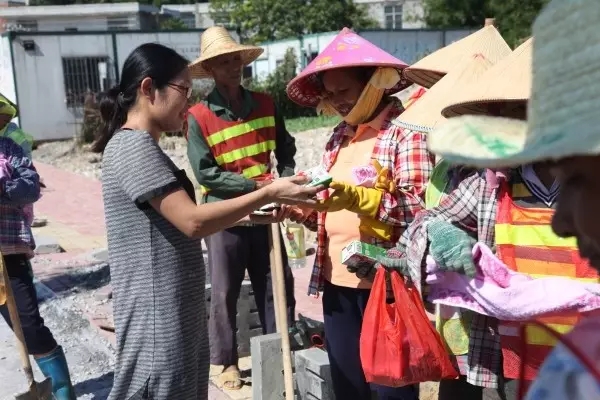 防城港的夏天持續(xù)高溫,熱氣襲人,但為了保證施工進度,公司項目部員工不畏困難,戰(zhàn)高溫、斗酷暑,依舊堅守崗位。頂著高溫奮斗在一線崗位的員工牽動著公司領(lǐng)導的心,7月25日下午,在防城區(qū)總工會的支持下,受集團公司龍其偉總裁和龍其生董事長的委托,集團副總裁唐光源、工會主席鐘麗霞、副總經(jīng)理龐樹玉一行前往防城港市東灣綠化工程施工現(xiàn)場看望奮戰(zhàn)在高溫一線的項目部員工,為他們送去了夏季防暑物品,為員工們帶來了絲絲“清涼”。