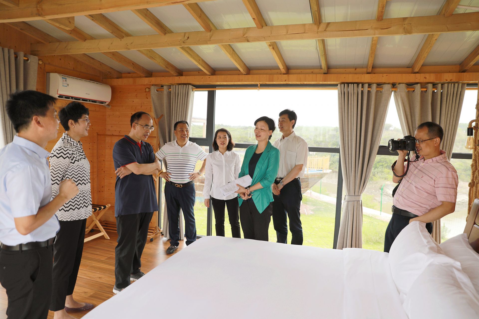 陳潔副部長(zhǎng)一行在項(xiàng)目建設(shè)的“漁船民宿”現(xiàn)場(chǎng)調(diào)研