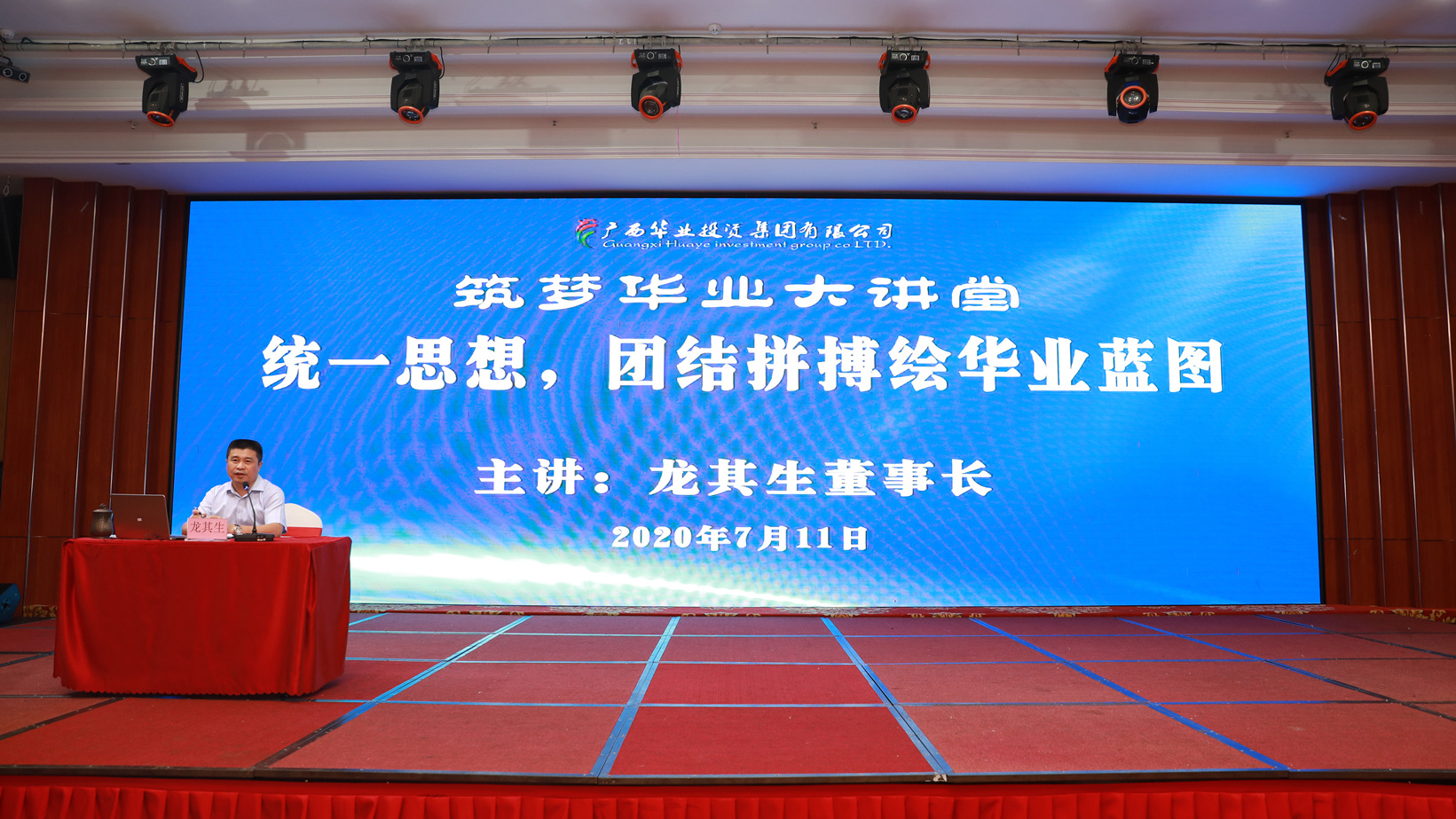 2020年7月11日,華業(yè)集團(tuán)“筑夢華業(yè)大講堂”首期講堂拉開序幕,集團(tuán)龍其生董事長為集團(tuán)全體中高層領(lǐng)導(dǎo)講授了主題為“統(tǒng)一思想,團(tuán)結(jié)拼搏繪華業(yè)藍(lán)圖”生動而精彩的一課?!爸羧A業(yè)大講堂”將打造為集團(tuán)今后常態(tài)化開展的學(xué)習(xí)交流平臺。