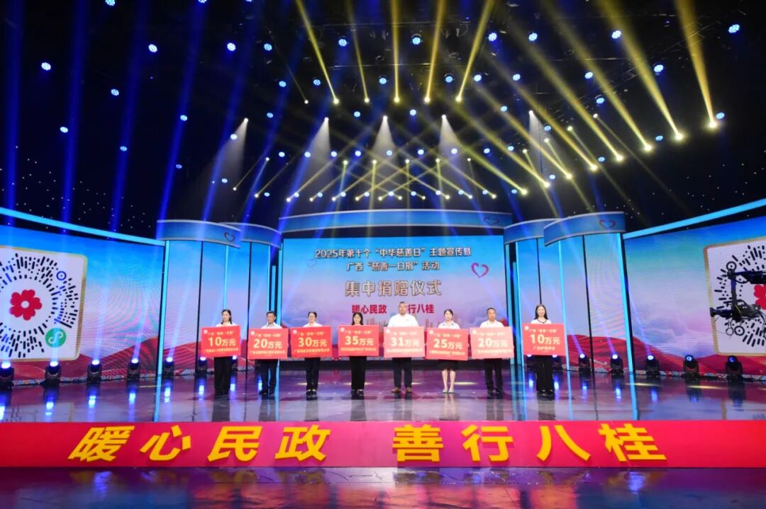 9月5日晚,2025年全國第十個(gè)“中華慈善日”主題宣傳暨廣西“慈善一日捐”活動(dòng)集中捐贈(zèng)儀式在廣西廣播電視臺(tái)隆重舉行。華業(yè)集團(tuán)總裁龍其偉、集團(tuán)黨委副書記王孟軍出席活動(dòng),并代表集團(tuán)捐贈(zèng)慈善款項(xiàng)20萬元。
