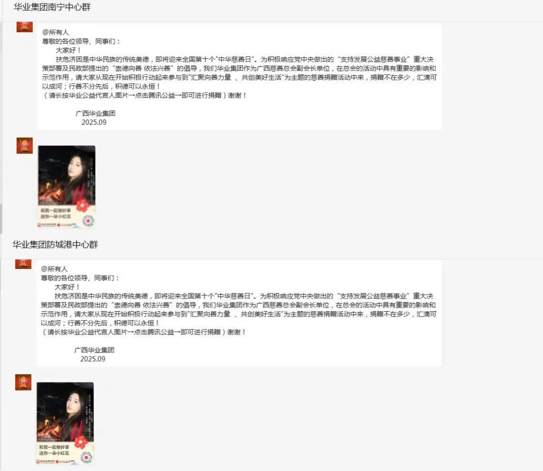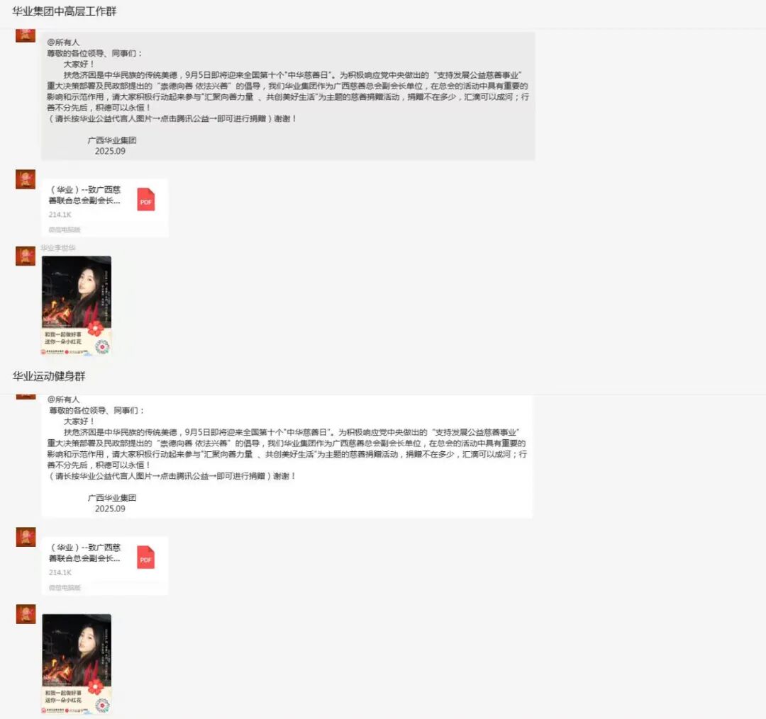 活動(dòng)期間,華業(yè)集團(tuán)積極宣傳動(dòng)員,通過內(nèi)部會(huì)議、企業(yè)微信工作群、微信公眾號等平臺(tái)發(fā)布廣西慈善聯(lián)合總會(huì)活動(dòng)倡議書及企業(yè)公益代言人募捐二維碼,構(gòu)建“線上+線下”捐款助力雙通道,連續(xù)多日引導(dǎo)員工通過掃碼捐贈(zèng)、集中募捐等形式參與活動(dòng),員工參與率達(dá)98%,形成全員參與慈善熱潮。